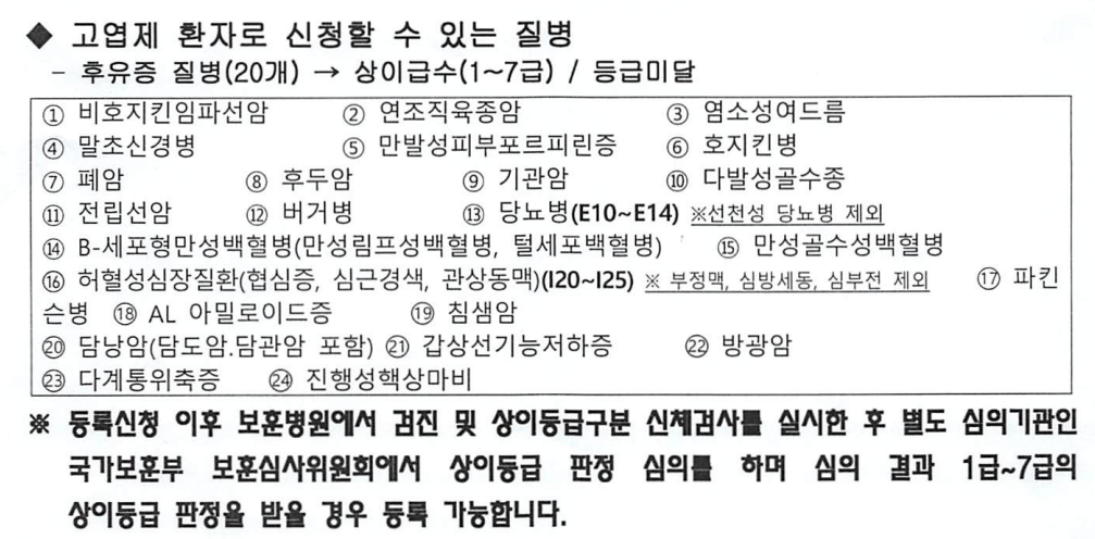 ◆ 고엽제 환자로 신청할 수 있는 질병